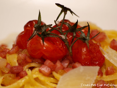 6. Jeg ble rent nostalgisk av å se pasta carbonara på bloggen din. Jeg lager denne retten etter en oppskrift jeg har fått av en bestemor i Roma, sånn skikkelig typisk italiensk bestemor som lever livet på kjøkkenet og starter matlagingen om morgenen og lager alt fra grunnen av. Hun er ikke min bestemor, men bestemoren til en venn. Oppskriften er litt annerledes enn din, skal legge den ut en gang jeg også.