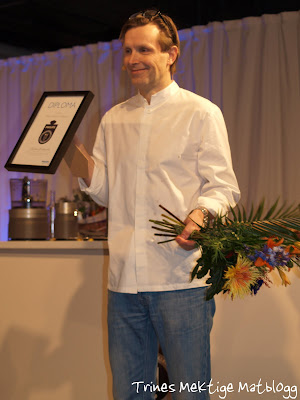 Det var morsomt å studere kokkene mens de kokkelerte seg frem til sine retter. Deltagerene var kokker med særpreg og humor. Min favoritt ble raskt den finske kokken, Henri, som med sjarm og humor fikk latteren til å sitte løst blant publikum. Jeg ble ikke det minste overrasket da en finsk matjournalist under lunsjen kunne fortelle at han er en anerkjent og populær tv-kokk i hjemlandet, med eget matprogram. Også omtalt som Finlands Jamie. Henri laget en hovedrett av grillet perlehøns, fylt med hasselnøttsmør og svøpt i bacon, servert med grønnsaker og blåbærvinaigrette. Blåbærvinaigretten var nydelig og jeg skal nok gjøre et forsøk på den om ikke så alt for lenge.
