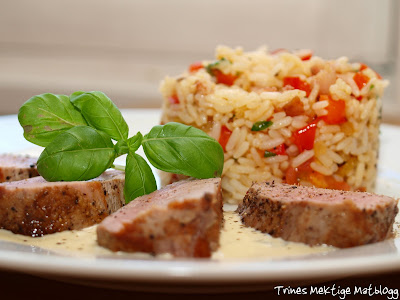 Denne retten, som ble servert i går kveld, er nok den siste som ble tilberedt på det gamle kjøkkenet. Nå har vi så smått begynt å pakke bort kopper, kar og utstyr, og malingsarbeidet er godt i gang. Nå ligger det an til to uker uten særlig matlaging her hjemme, men jeg håper likevel at jeg kan servere litt på bloggen for jeg har noen oppskrifter på lur. I dag skal vi spise ute for å feire min kjære som fyller år i dag. Han vet enda ikke hva og hvor vi skal, så det er litt gøy å holde han på pinebenken!