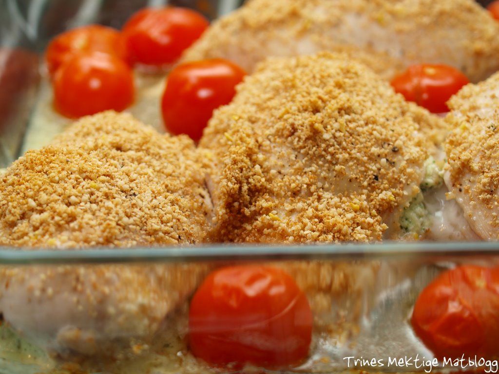 Stekes ved ca 200 grader, i ca 20-25 minutter, til kyllingbrystene er gjennomstekte. La de hvile i ca 5 minutter før servering.