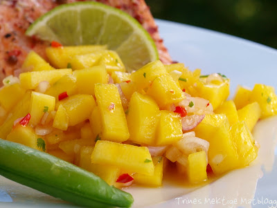 Laks som faller fra hverandre når du fester blikket på den, ja hva smaker vel bedre? Her har laksen fått uventet søtt og sterkt selskap av mangosalsa med et hint av chili, noe som var en heldig match, og som skal prøves igjen ved en annen anledning. Fort gjort er det også, og passer like godt til hverdag som til fest.