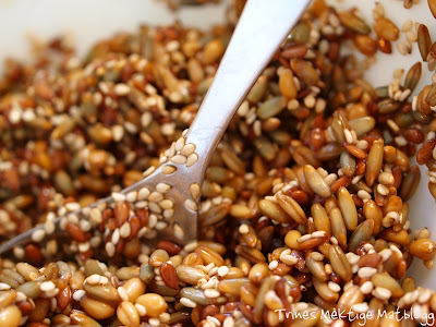 solsikkekjerner, sesamfrø og linfrø til «pynt»