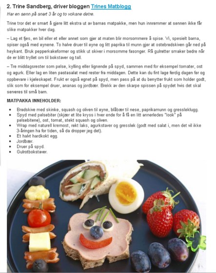 Mars 2011, Foreldre og barn – Slik får barna dine den kuleste matpakken: Mer om dette kan du lese HER. Publisert 28. 3. 2011 del denne oppskriften: