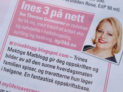August 2010: Trines matblogg anbefales i KK…